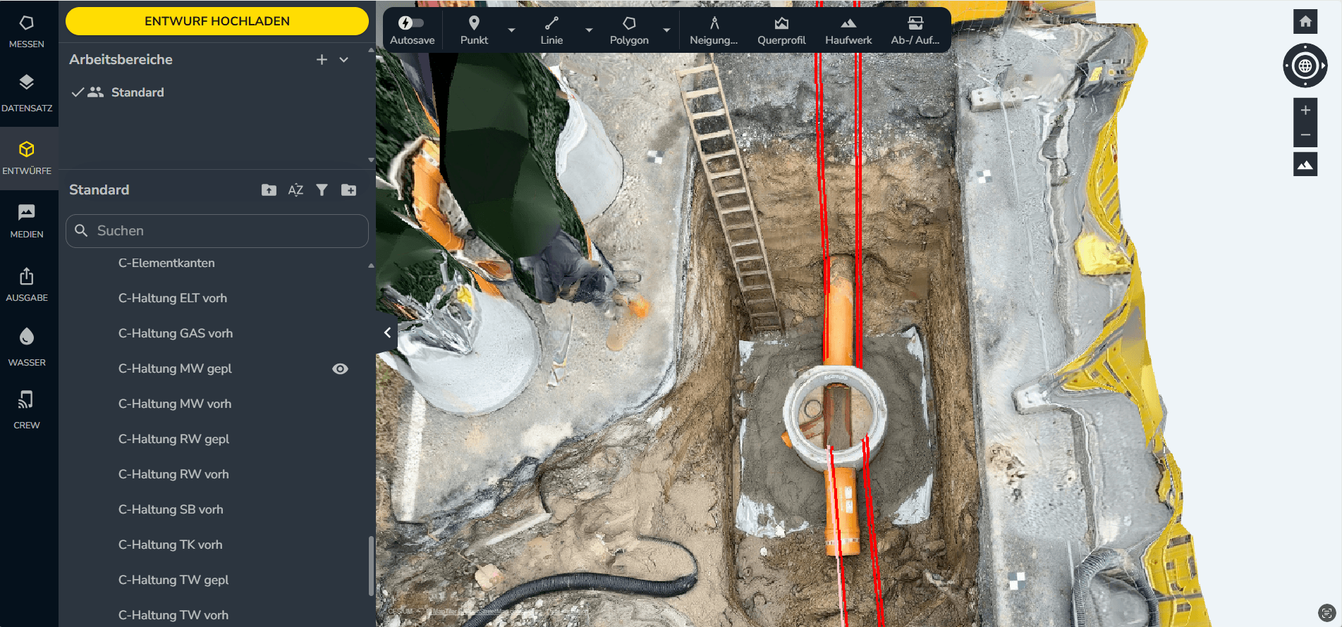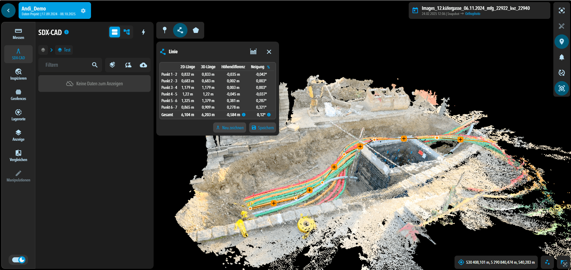 Die SDX-Cloud ermöglicht den schnellen und einfachen Zugriff auf verschiedene Plandaten und 3D-Datenmodelle von Baustellen. Nutzer können diese Modelle hochladen, darauf zugreifen und sie analysieren. Der Vorteil der SDX-Cloud liegt in der einfachen Verwaltung, dem Hochladen und der Analyse dieser Daten.