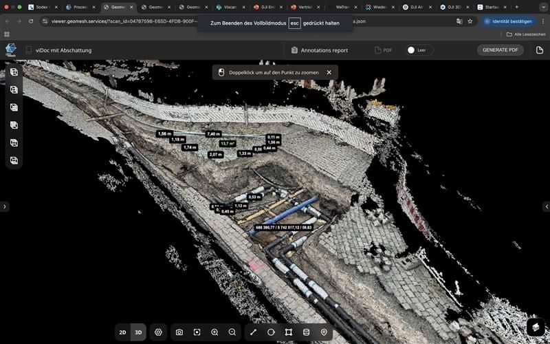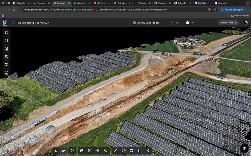 Die geomesh-Cloud kann alle Drohnen-Datensätze zusätzlich zu den Datensätzen der scin® App verarbeiten. Der einfachste Weg, 3D-Scans zu betrachten, zu messen und zu prüfen bis hin zu einem Bericht. Einfache Messfunktionen für Einzelpunkte, Linien und Flächen, sowie Volumenberechnungen helfen Ihnen, Ihre Messungen schnell und digital zu erstellen. Fassen Sie alles in einem standardisierten Bericht zusammen und verknüpfen Sie Ihre Zustandserfassung zu Nachweiszwecken. geomesh-Cloud ist für alle Regionen verfügbar, in denen scin® eingesetzt wird. Wenn Sie bereits Kunde von viDoc® und/oder der scin® App sind oder eine eigene DJI Enterprise Drohne besitzen, ist der Weg zur Nutzung unserer Plattform kurz und einfach.
